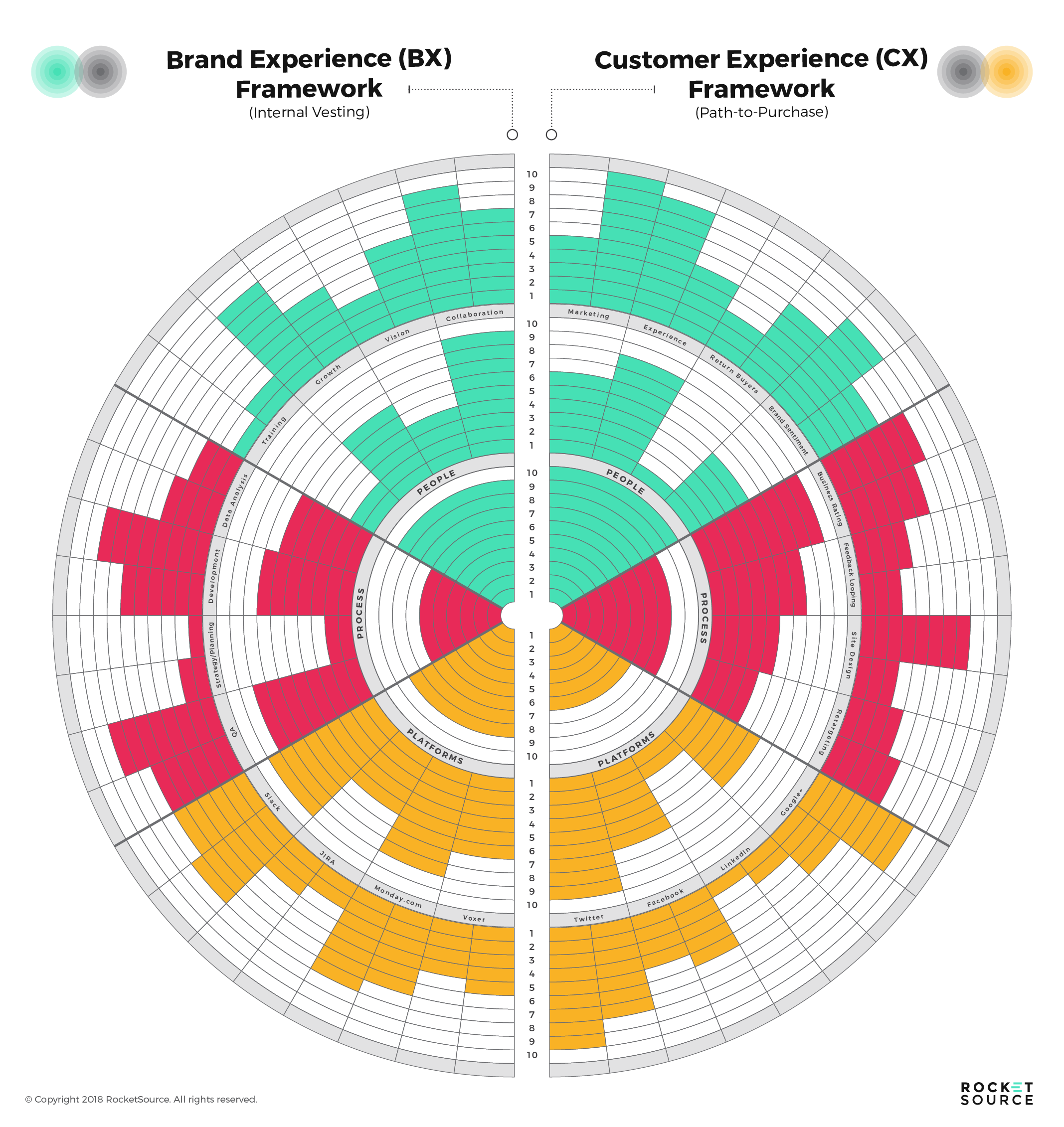 At RocketSource, we dig deeper than just the customer’s journey. Our CIM is powerful because it doesn’t just offer insights based on looking at the path-to-purchase, but also looks vertically at what’s happening internally throughout the experience.