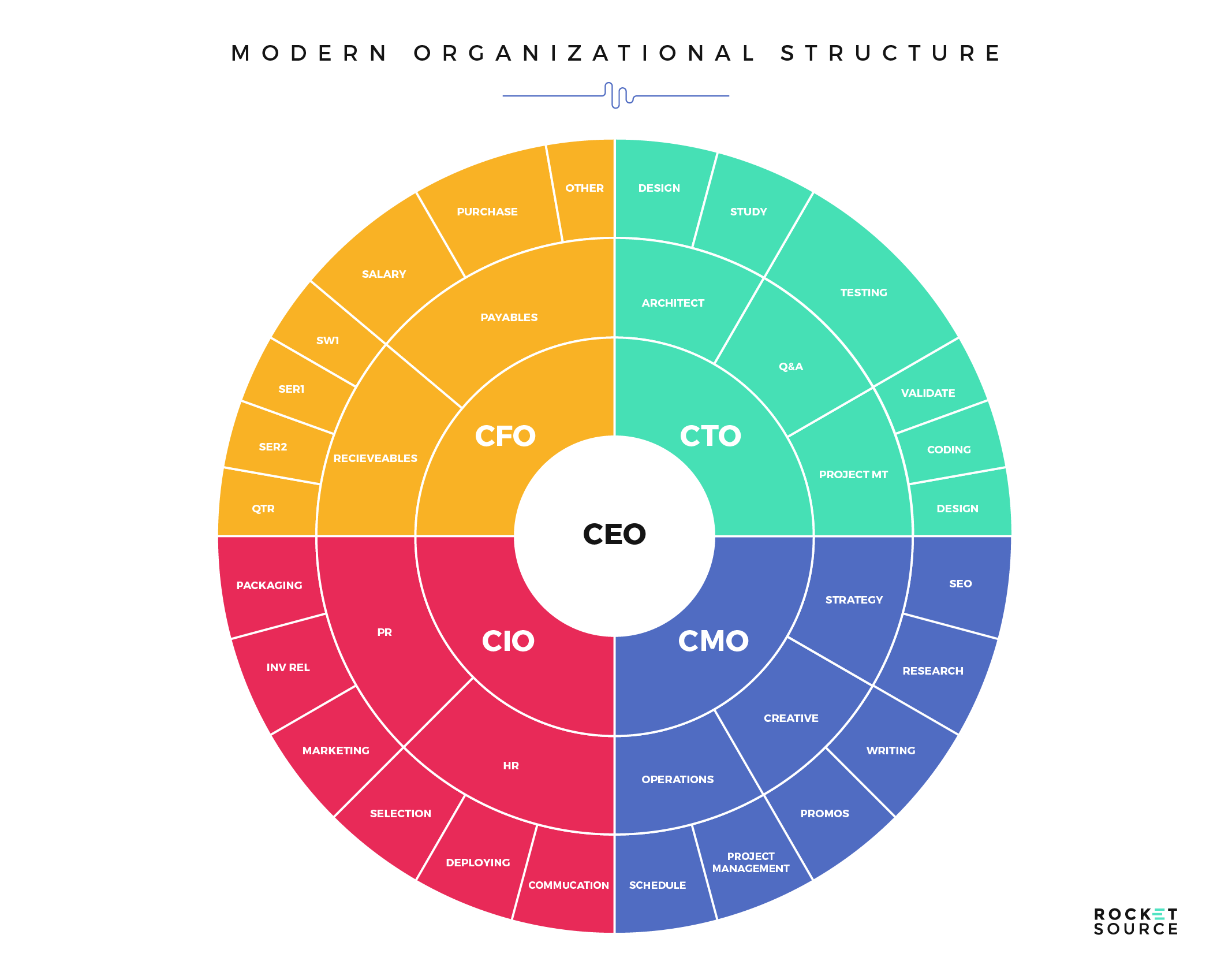 Now take a look at another department often found in Software as a Service (SaaS) businesses — development operations. In this department, you have front end, back end, system architects, data architects, a development operations manager who interfaces with a programmatic data architect and looks closely at the front end GUI, UX/UI, a strategist and executive leadership. And the list goes on.