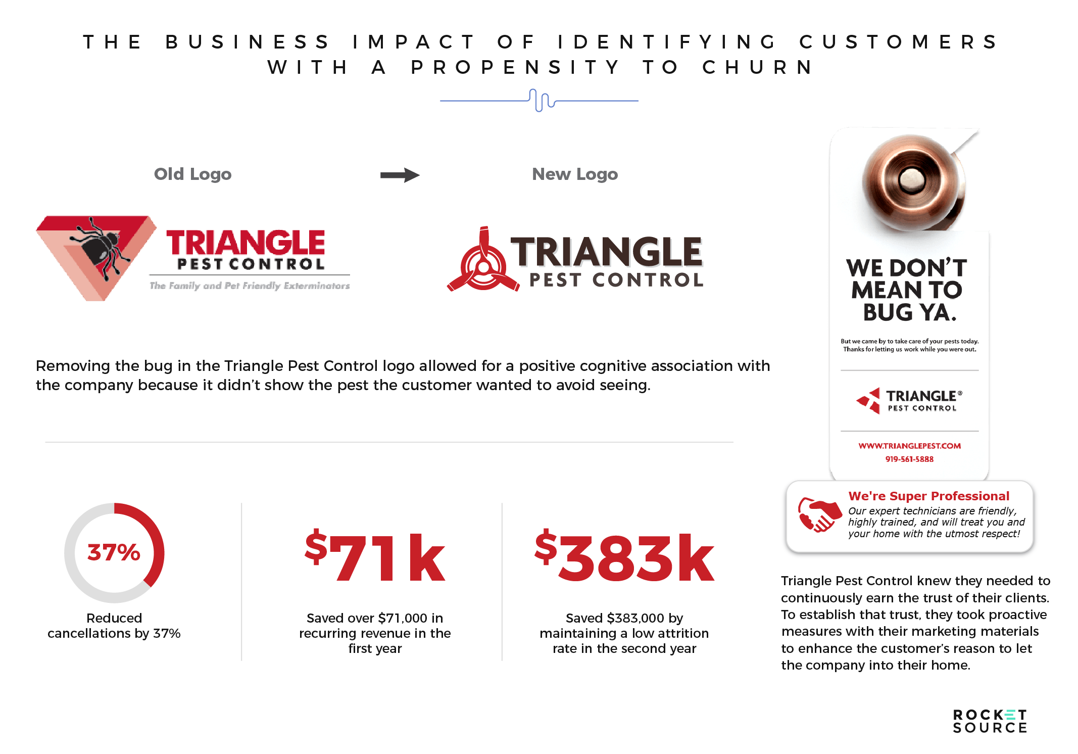 In just one year, by identifying and nurturing the customers with the highest propensity to churn, Triangle Pest Control reduced cancellations by 37% and saved over $71,000 in recurring revenue. In the second year, they saved $383,000 by maintaining the low attrition rate.