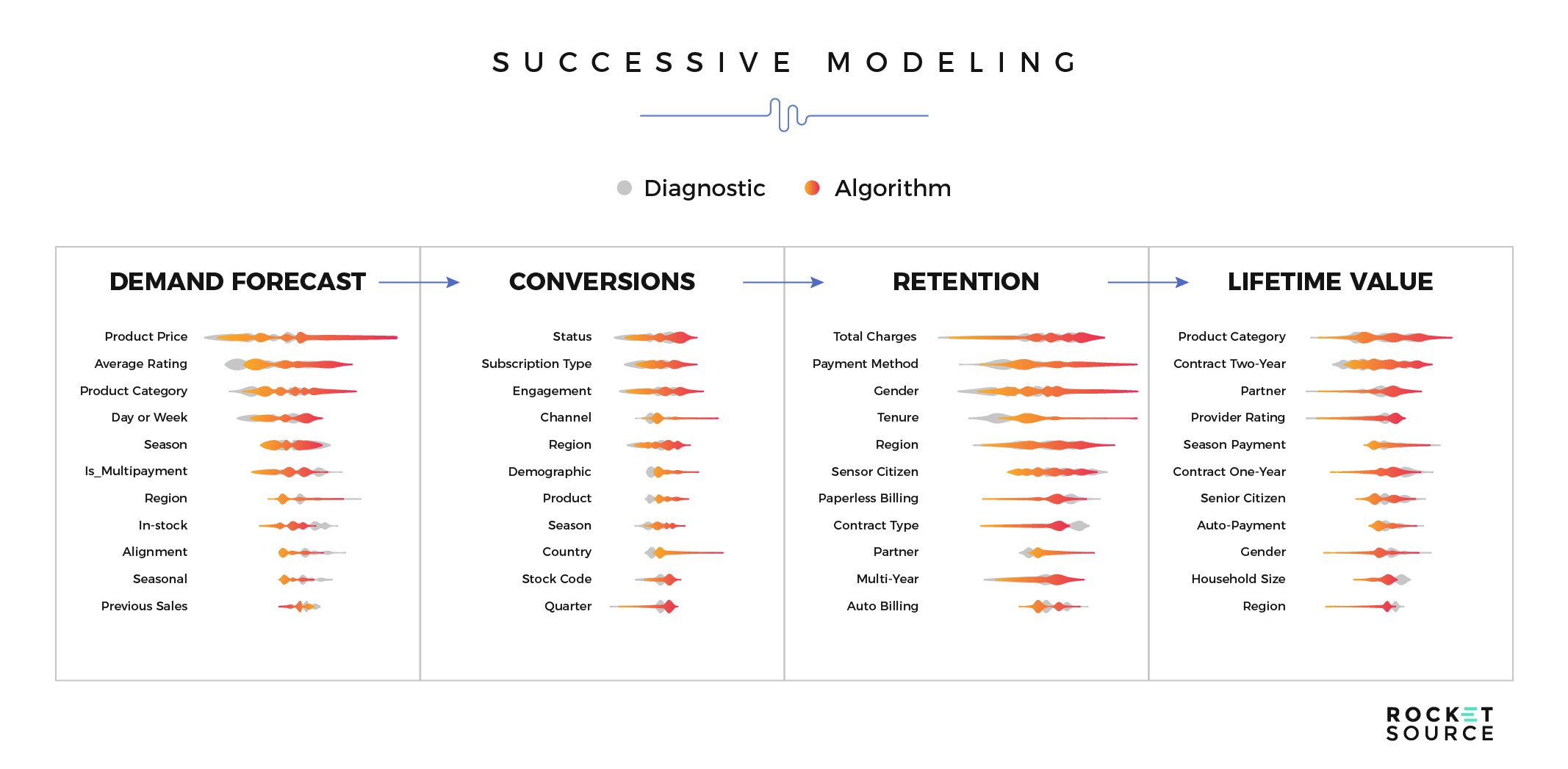 There are also several different LTV-based predictive models, each with their own pros and cons. At RocketSource, we lean into behavior-driven models to get a better understanding of what’s happening at the user-level.