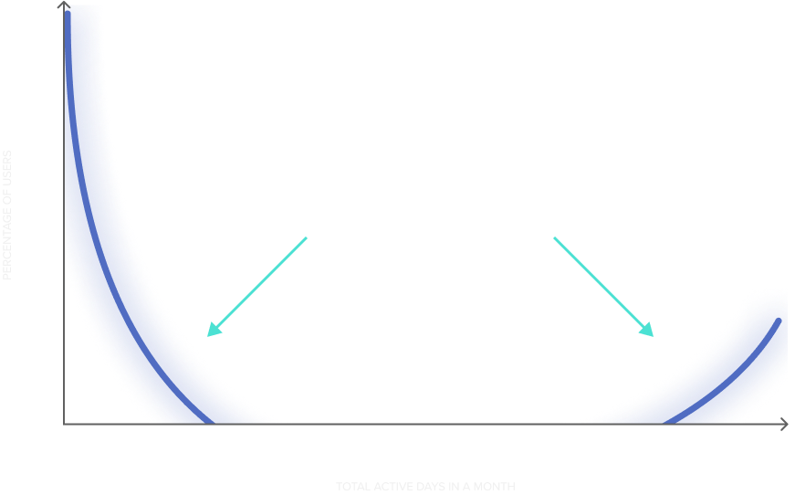 The Power User Curve is critical in pinpointing where something is broken. If your users are only active on your platform for a few days, there’s an issue. On the flipside, if they’ve adapted your product into their daily lives, logging in almost every day, you’ve found your power users where engagement remains high across the board.
